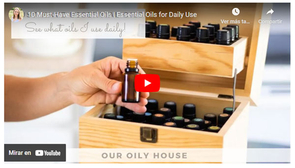 Interesante video donde la terapista y ama de casa explica por qué entre sus 400 o más aceites esenciales de su repertorio, estos son los 10 indispensables para sus labores de esposa y madre.